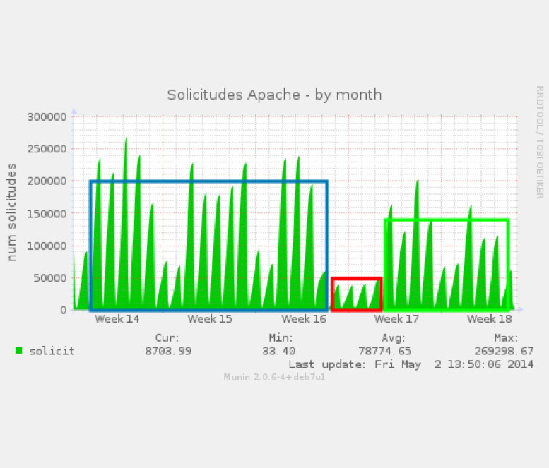 Igualmente registraremos los tiempos de respuesta de los principales proyectos alojados indicados por el cliente, de tal forma que si detectamos en los mantenimientos una mejora o un empeoramiento de los mismos, podamos informar y revisar si cambios realizados desde programación o sistemas están afectando de forma positiva o negativa al proyecto.