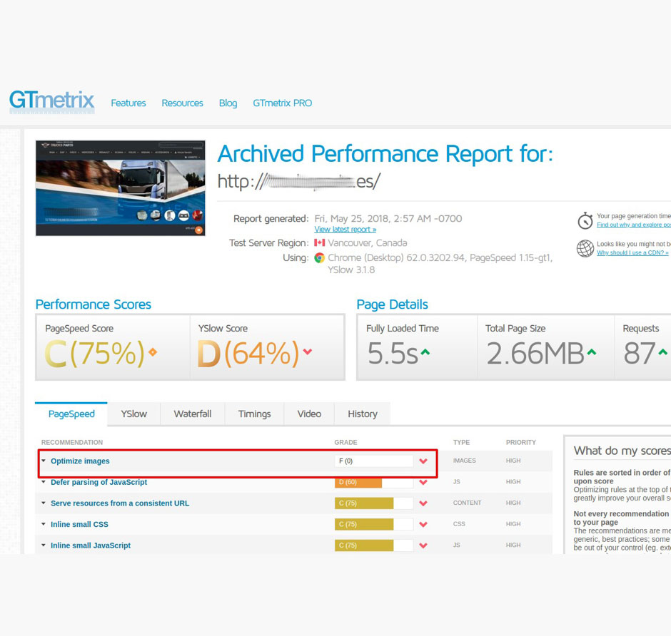 Optimizamos tu/s carpeta/s de imágenes JPG y PNG sin perdida de calidad (Lossless) para la mejora de rendimiento y de indexación de Google como indican herramientas como Gtmetrix o PageSpeed.
